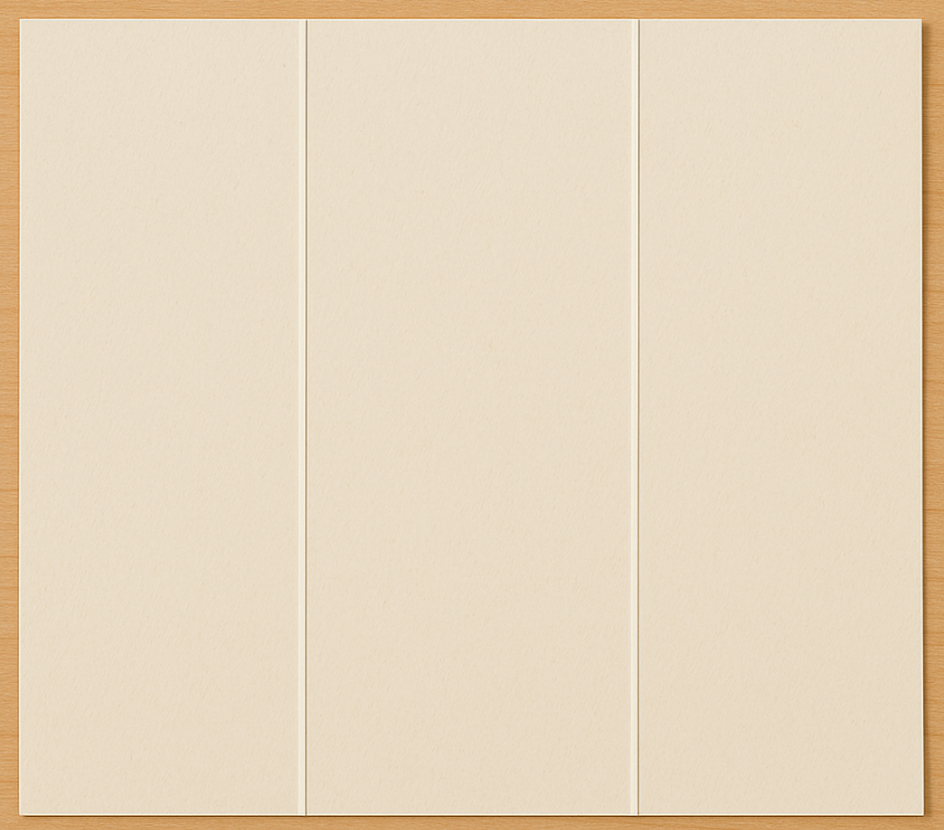 - Fold the card into thirds like a pamphlet, with the right panel folding in first and the left over it.