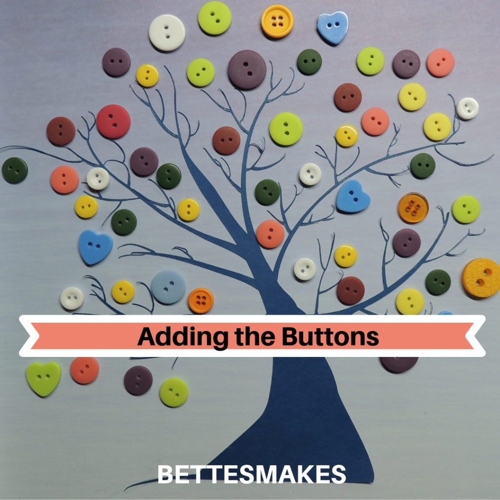 Do you have a button stash? I know I do and it keeps getting bigger. When I visit the dollar store I often see packages of buttons that are one color with variations. I am so tempted to get them for a project and I often pick them up. I also have buttons from discarded shirts! If you have a stash, then this project is the perfect way to add some art to your walls and help decrease the number of buttons in your tin at the same time! The template for the tree is provided so you can cut it on your Cricut or simply cut it out with scissors. You can really get creative with the colors and how you place the buttons!